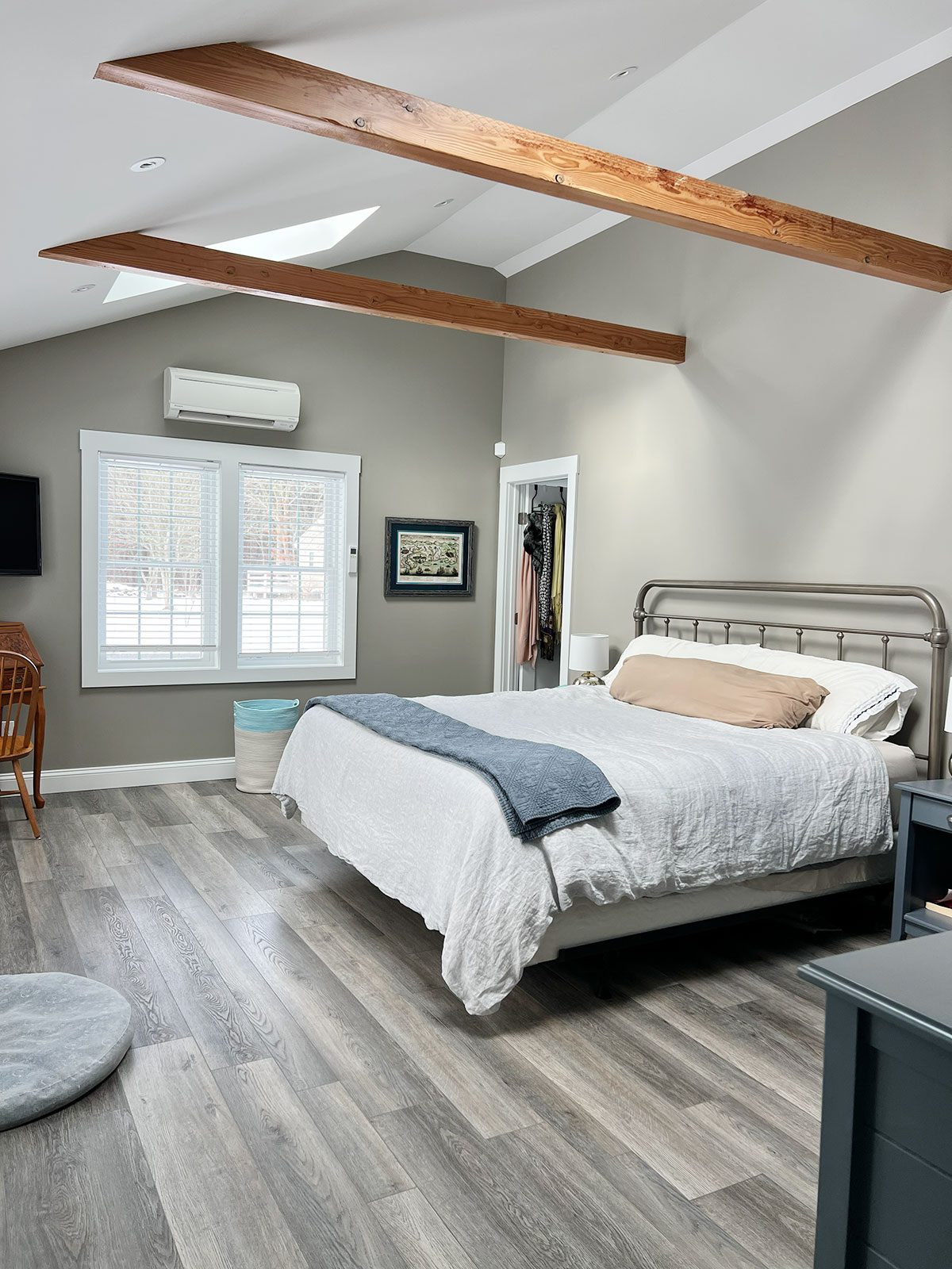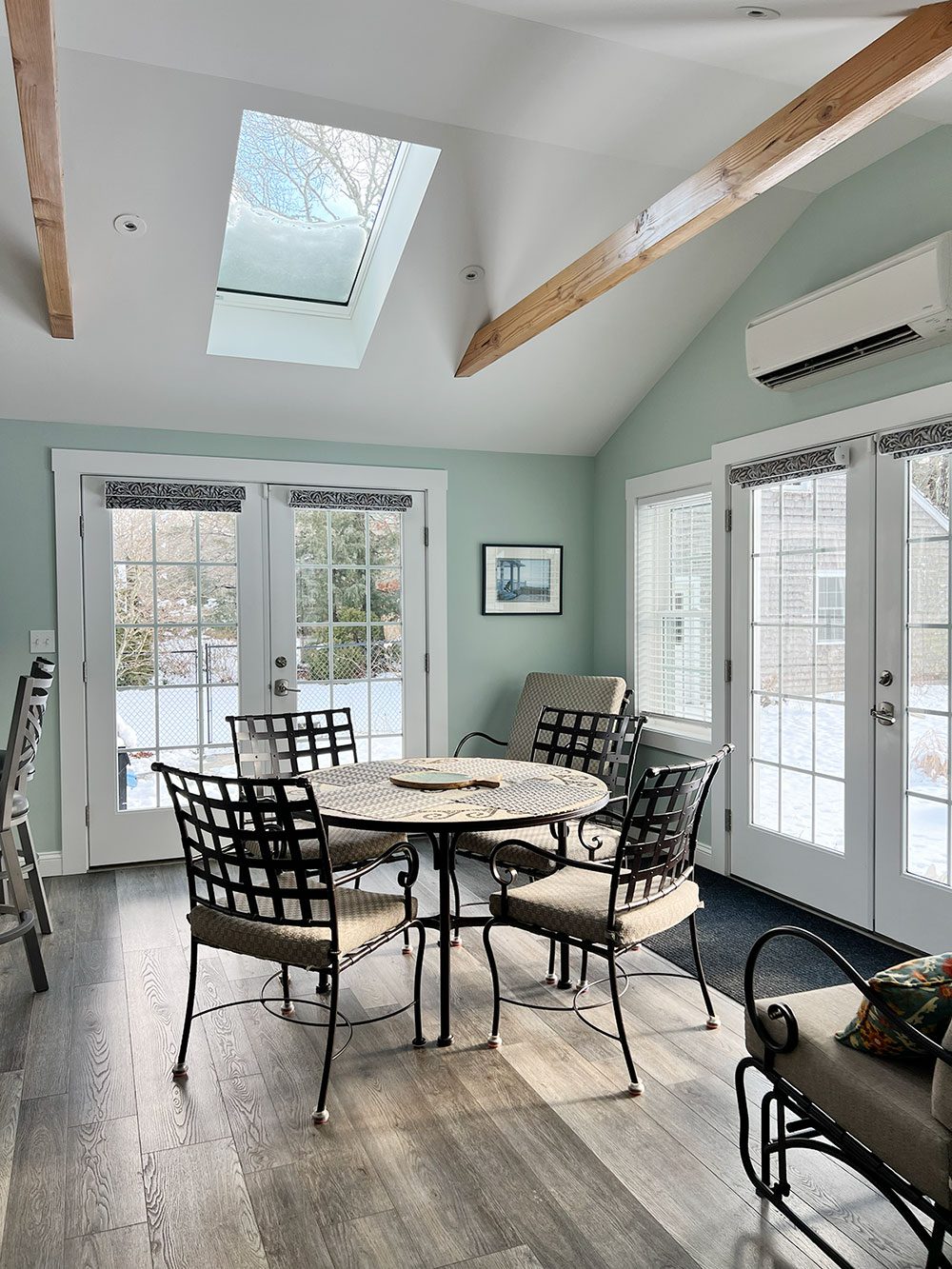 This project included two additions to the home: a 12′ x 16′ sunroom and a 24′ x 24′ primary suite featuring a spacious bedroom, bathroom, and walk-in closet. To create a more open living space, two load-bearing walls between the kitchen and living room were removed and replaced with LVL structural beams to properly support the roof.